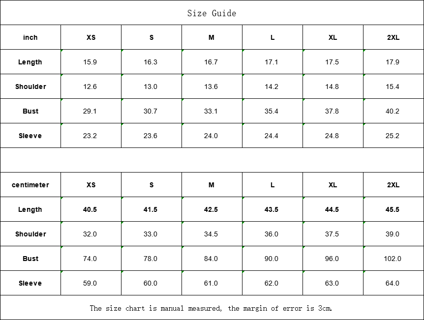 Bust | 74.0 | 78.0 | 84.0 | 90.0 | 96.0 | 102.0 |