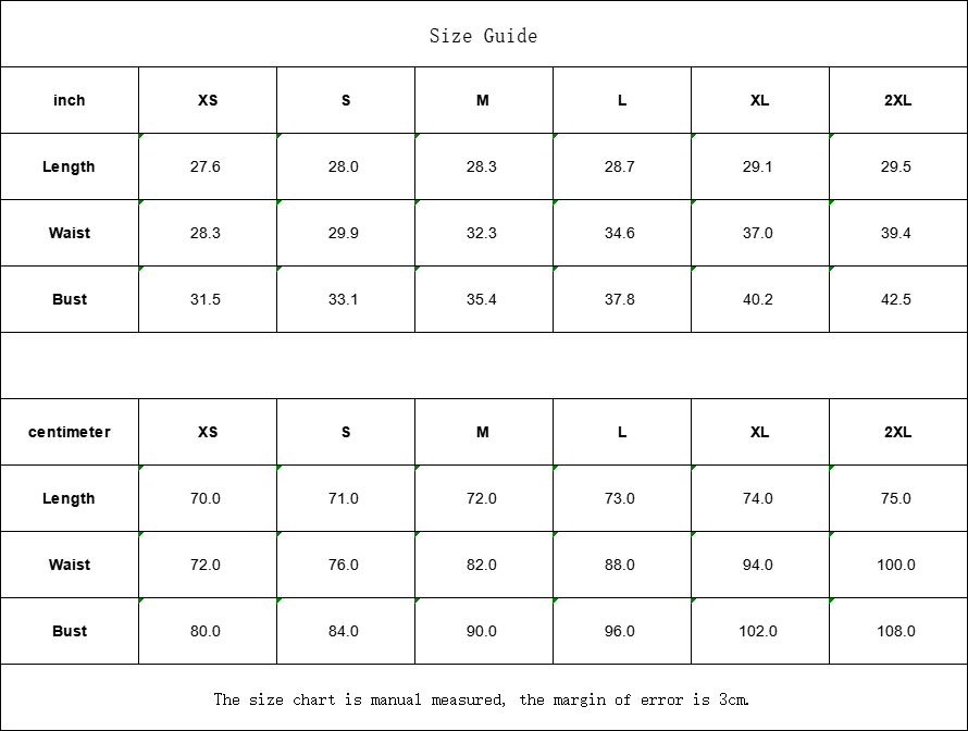Waist | 72.0 | 76.0 | 82.0 | 88.0 | 94.0 | 100.0 |